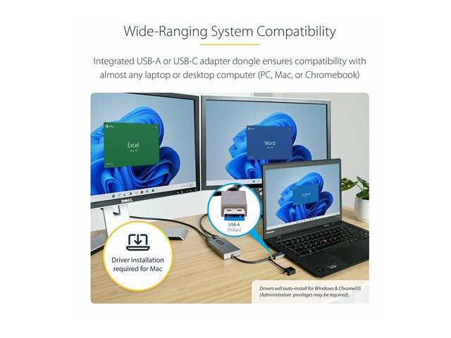 USB 3.0 to HDMI Multi-Monitor Display Adapter for Laptop (107B-USB-HDMI) - Videokort - USB typ A, 24 pin USB-C hane till 2 x 19 pin HDMI Type A hona - grå - stöd för 4K