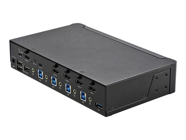 En skärm 4K 60 Hz Ultra HD HDR - Desktop HDMI 2.0 KVM-switch med 2 portar USB 3.0-hubb (5 Gbit/s) och 4x USB 2.0 HID, ljud - Snabbtangenter för omkoppling - TAA - Omkopplare för tangentbord/video/mus/ljud - 4 x KVM/ljud - 1 lokal användare - skrivbordsmodell, rackmonterbar - TAA-kompatibel