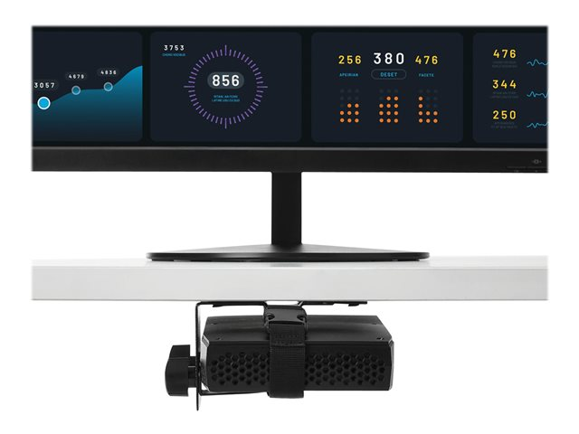 VESA-monteringshållare - Monteringskomponent (monteras på stång, rem, VESA monteringsfäste) - för smal klient - plast, stål - svart - under skrivbordet, stångmontering, monitor - för P/N: ARMDUALSS, ARMPIVOTE2, ARMUNONB1, DK30C2DAGPD, DK30C2HAGPD, FPPNEUSTND, TB3DK2DPM2
